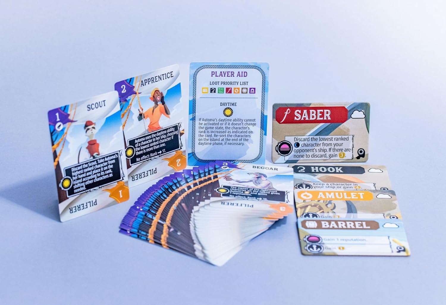 In the world of Galecrest, sky pirates set sail on the winds in search of adventure, treasure, and glory. As an admiral, you command a vast and varied crew...but so do your rivals sailing other ships in the pirate fleet. Each day the fleet lands on a different island where you'll send a crew member to collect your share of the loot, hoping they'll return to boost your growing group of characters.